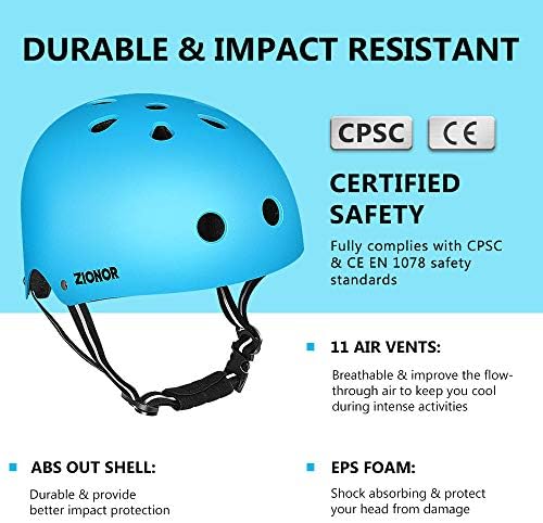 ZIONOR H3 Skateboard Helmet – CPSC Licensed Bike Helmet for Youngsters/Youth/Adults – Snug Sporting for Bicycle/Biking/Skateboarding/Curler Skating/Inline Skating/Scooter